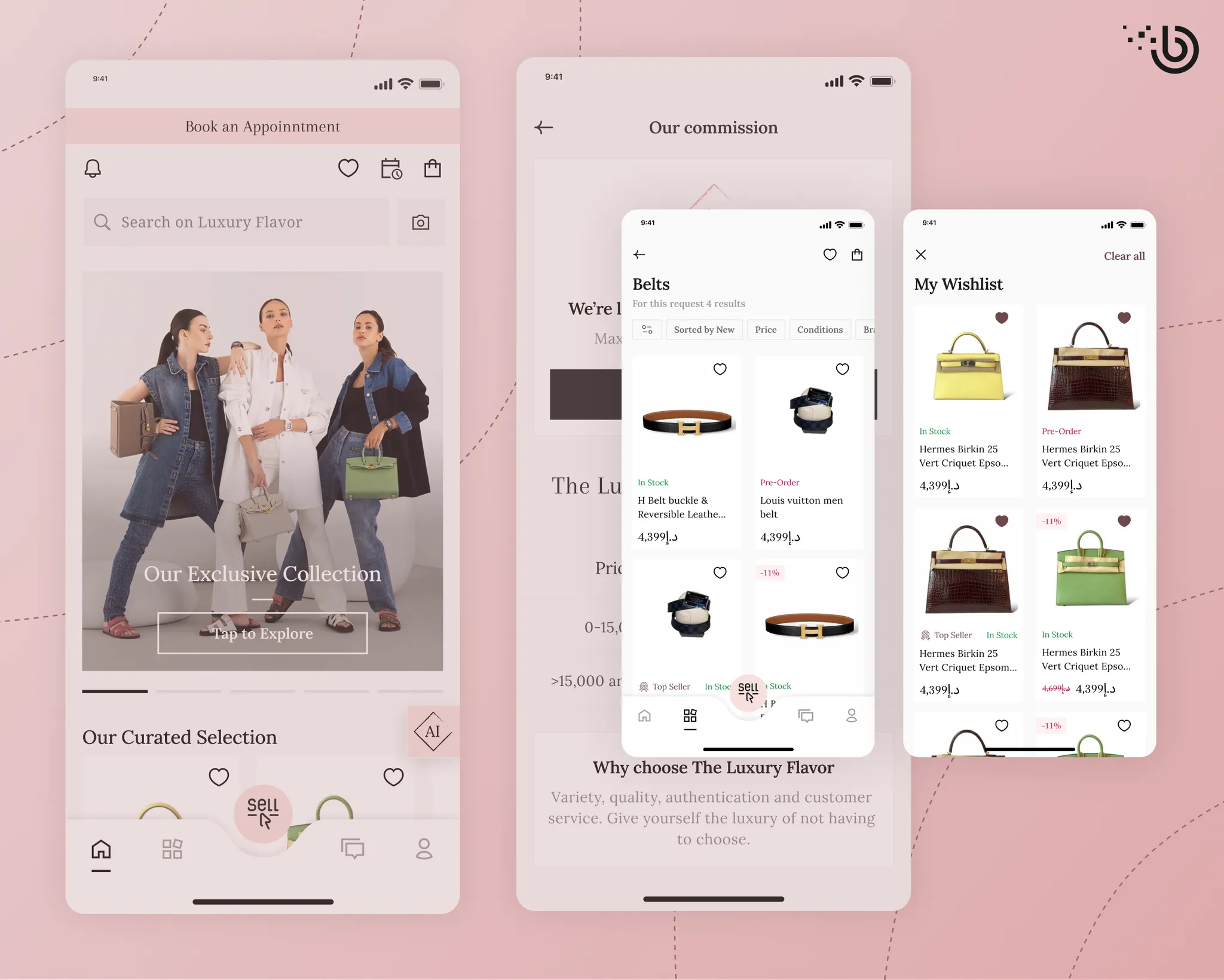 The project represents a luxury eCommerce platform that seamlessly connects buyers and sellers of premium fashion items such as designer bags, shoes, watches, and accessories. It offers a modern and intuitive experience with advanced search, personalized recommendations, and secure transactions. Moreover, users can chat directly with sellers, book consultations, and manage their accounts effortlessly within one application. They can also save favorite products to wishlists and receive instant notifications about new arrivals or exclusive offers. In addition, the platform ensures trust and transparency through verified profiles, a protected payment system, and an elegant user interface aligned with the aesthetics of the luxury market. As a result, both buyers and sellers enjoy a convenient, secure, and stylish environment designed specifically for high-value transactions. Ultimately, this product redefines the way people engage in luxury resale by combining technology, personalization, and trust – all within one unified ecosystem.